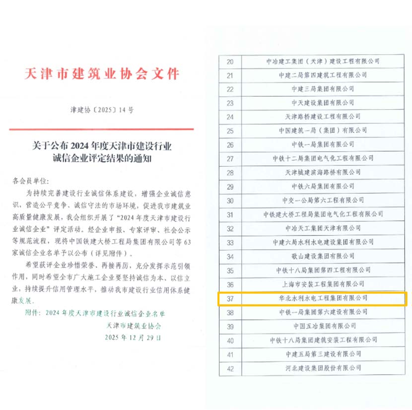 未来,球王会(中国)将珍惜荣誉、持续深化诚信体系建设,充分发挥示范引领作用,积极践行国企担当,为天津市建设行业高质量发展贡献华水力量!